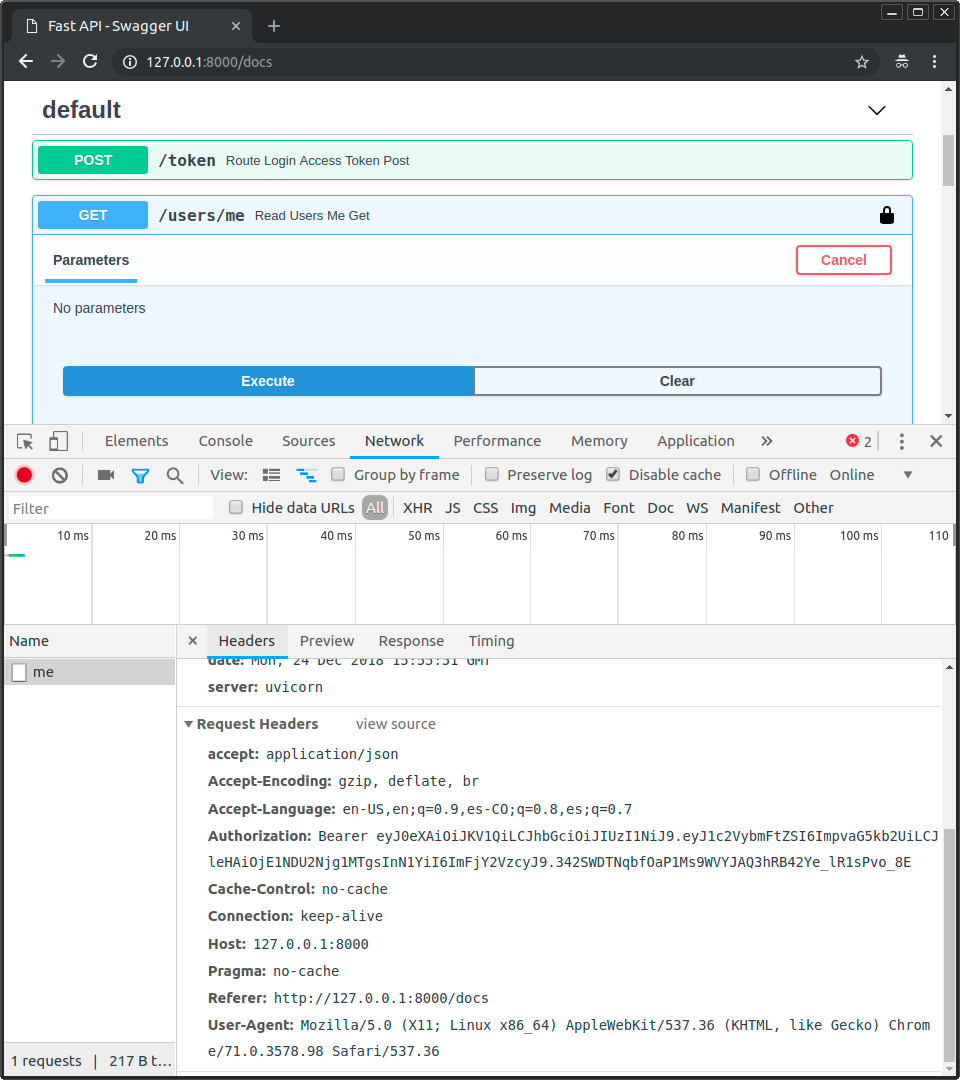 Aktualisieren Sie get_current_user, um den gleichen Token wie zuvor zu erhalten, dieses Mal jedoch unter Verwendung von JWT-Tokens.